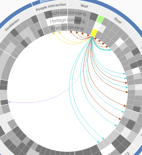 The wheel depicts more than 50 measures that can be used for the retrofitting or refurbishing of traditional buildings. It encourages exploration of the measures’ advantages, concerns about their performance and possible interactions between them.
